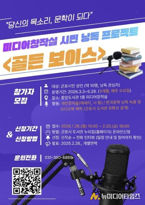 참여 신청은 2026년 1월 26일부터 2월 20일까지 군포시 도서관 누리집을 통해 온라인으로 접수하며 선정된 참여자들은 단체 소통 채널을 개설해 약 3개월간 낭독 녹음 활동을 진행한다. 완성된 낭독 결과물은 오디오북으로 제작되어 도서관 공식 유튜브 채널을 통해 시민들에게 공개된다.