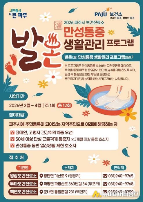 파주시 보건진료소는 보건의료 취약지역 주민들의 건강증진을 위해 2026년 ‘발온(溫) 만성통증 생활관리’교실을 운영한다.