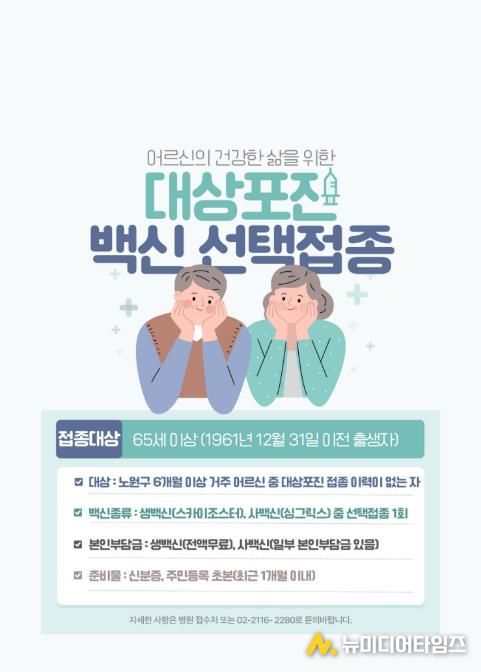 오승록 노원구청장은 “대상포진 예방접종은 고령층의 통증을 예방하고 삶의 질을 지키는 핵심적인 보건 정책”이라며 “앞으로도 현장의 목소리를 반영해 어르신께 실질적으로 도움이 되는 지원을 지속적으로 확대해 나가겠다”고 말했다.