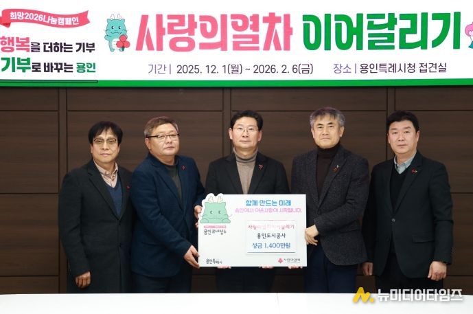 용인도시공사는 19일 ‘노사합동 사랑의열차 이어달리기’ 성금 1,400만원을 용인특례시에 기탁했다.