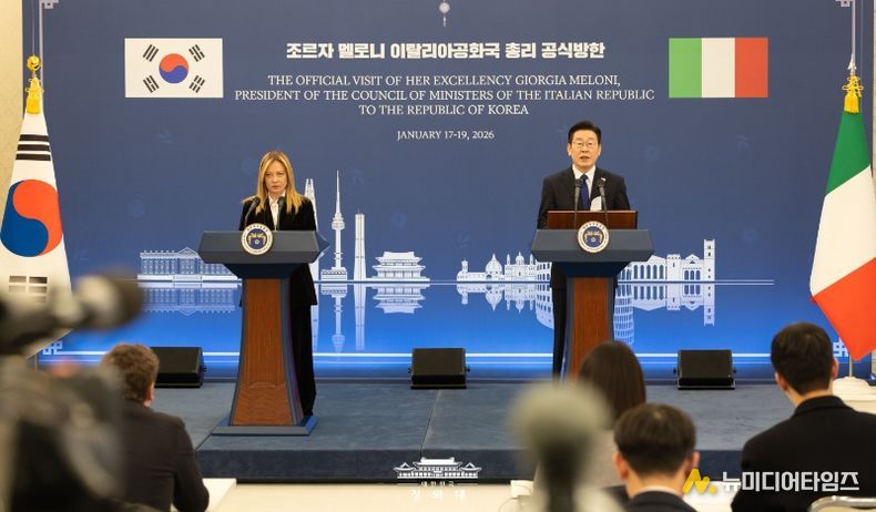 또한 이 대통령은 "세계 평화 안정에 기여하기 위해 긴밀한 협력을 이어갈 것"이라며 "한-이탈리아는 국제무대 가치를 공유하며 글로벌 도전에 공동 대응하는 우방국으로, 한반도 긴장 완화를 넘어 세계적 평화 가치를 함께 수호해 나갈 것"이라고 밝혔다.