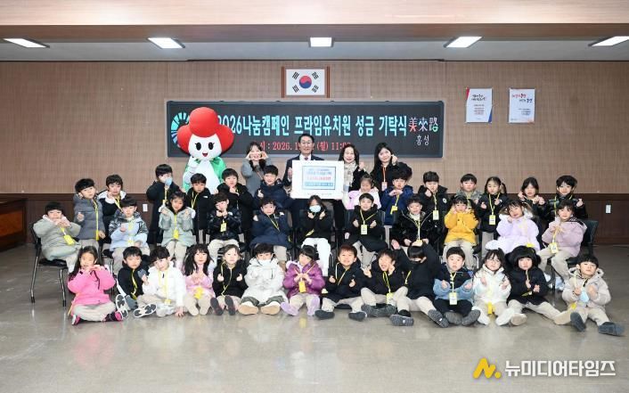홍성군은 지난 19일 군청 회의실에서 프라임유치원 아동 50명이 고사리손에 따뜻한 마음을 담아 모은 성금 160만 원을 기탁했다고 전했다.