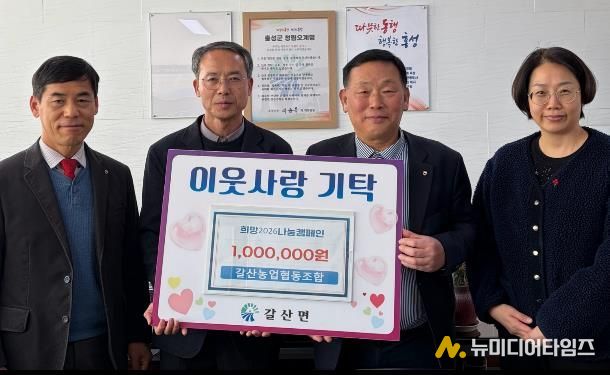 홍성군은 갈산농협이 갈산면을 통해 이웃돕기 성금 100만 원을 기탁하며 지역사회 나눔 실천에 동참했다고 밝혔다.