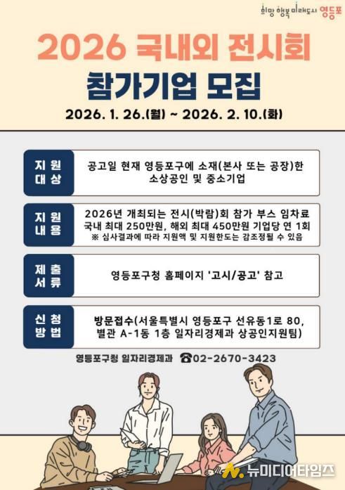 국내 박람회 참가 기업에는 최대 250만 원, 해외 박람회 참가 기업에는 최대 450만 원의 부스 임차료를 지원하며, 올해는 18개사 내외를 선정할 예정이다. 신청은 1월 26일부터 2월 10일까지이며, 구청 일자리경제과로 방문 접수하면 된다.