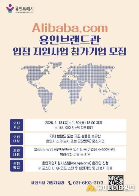 용인특례시는 오는 1월 30일까지 B2B(기업 간 거래) 플랫폼 알리바바닷컴 내 ‘용인브랜드관’(YoGo) 입점 참가기업을 모집한다고 20일 밝혔다.