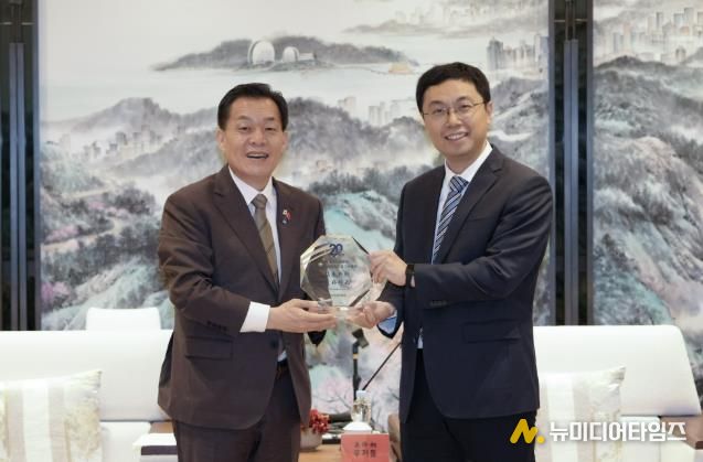 주하이시 왕하이루호텔에서 우저통 시장을 만난 이재준 시장은 20주년 기념 감사패를 교환하고, 교류·협력 방안을 논의했다.