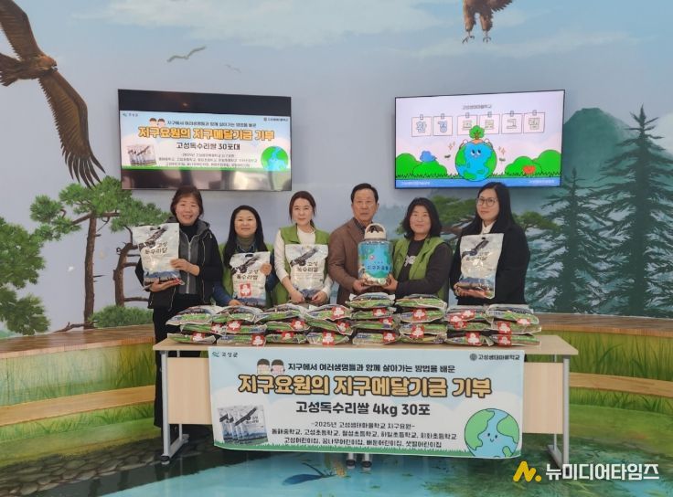 이번 기탁은 고성생태마을학교 140명의 학생들이 환경보호를 생활속에 실천하겠다는 다짐을 ‘지구 메달’이라는 표현으로 적립했고, 적립된 ‘지구 메달’ 만큼 마을 교사들이 고성독수리쌀로 기탁하는 방식으로 이루어졌다.