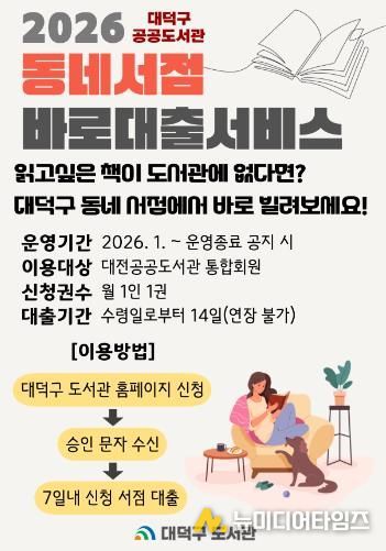 대전 대덕구는 2026년 공공도서관 ‘동네서점 바로대출 서비스’를 운영한다고 밝혔다.