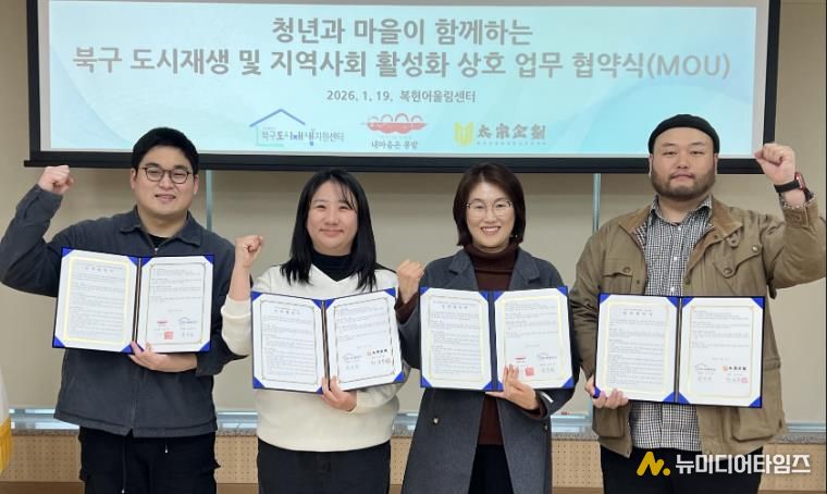 김은윤 북구 도시재생지원센터장은 “이번 3자 협약을 통해 청년과 주민이 함께 지역 문제를 고민하고 해결하는 과정을 도시재생 현장에서 실천해 나가며, 사람 중심의 도시재생이 정착될 수 있도록 적극 지원하겠다”고 밝혔다.