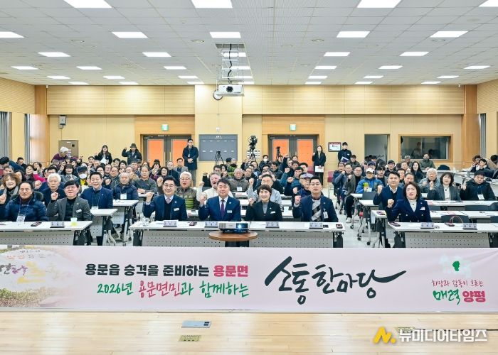 이어 2026년 용문읍 도약을 위한 향후 추진 계획으로 △경기 광주~용문 간 일반철도 신설 △KTX 용문역 정차 추진 및 종합훈련장 폐쇄 △용문산 관광지 활성화 용역 추진 등 교통 인프라 확충과 동부권 관광지 개발을 중심으로 한 핵심 정책 방향이 제시됐다.
