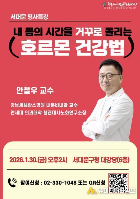 서대문구가 연세대 의대 강남세브란스병원 내분비내과 안철우 교수를 초청해 이달 30일 오후 2시부터 90분간 구청 6층 대강당에서 ‘1월 서대문 명사 특강’을 개최한다.