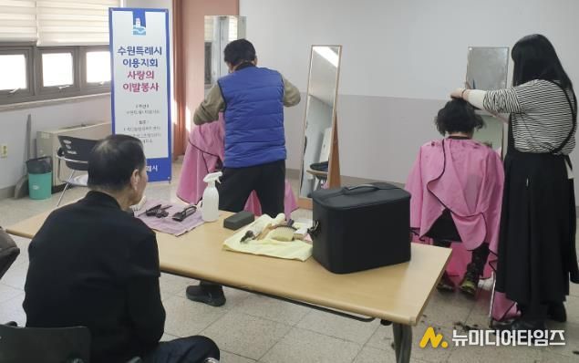 수원시 영통구 매탄3동에 위치한 미용실 ‘시저스맨’이 지역 내 저소득 노인과 장애인을 위한 정기적인 이발 봉사를 이어가고 있다.