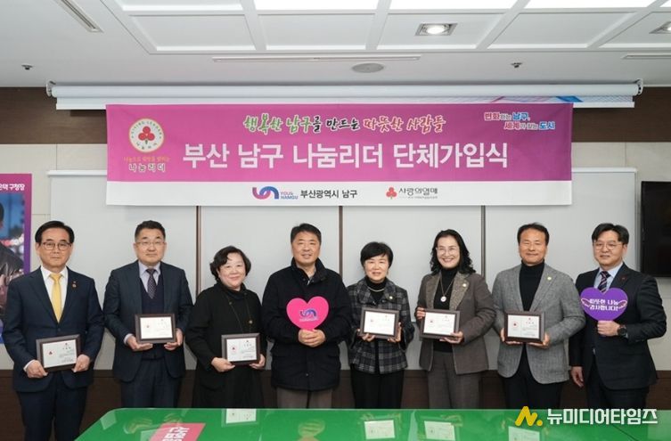 부산광역시 남구는 지난 20일, 지역사회 나눔문화를 선도하는'남구 나눔리더' 단체 가입식을 개최했다고 밝혔다. 이날 가입식에는 5명의 신규 가입자와 골드회원 승급자 1명을 포함, 총 6명의 나눔리더가 참석해 인증패 전달 및 나눔 선포의 시간을 가졌다.