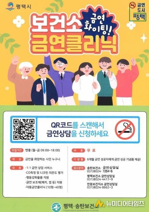 평택시 송탄보건소 관계자는 “금연을 결심했지만 어떻게 시작해야 할지 고민하는 시민들이 정보무늬를 통해 부담 없이 상담받길 바란다”며 “금연클리닉을 통해 시민들이 건강한 생활을 실천할 수 있도록 지속적으로 지원하겠다”고 말했다.