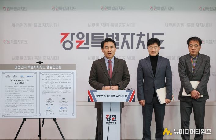 강원, 제주, 세종, 전북으로 구성된 ‘대한민국특별자치시도 행정협의회’(대표회장 : 김진태 강원특별자치도지사)는 1월 21일 4개 특별자치시‧도의 특별법안 조속한 통과와 광역 행정통합 인센티브 부여에 따른 역차별 우려를 담은 공동성명서를 발표했다.