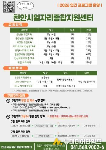 천안시는 취업 경쟁력 강화와 실질적인 채용 연계를 위해 ‘2026년 천안시 일자리종합지원센터 운영 계획’을 확정하고 본격적으로 추진한다고 22일 밝혔다.