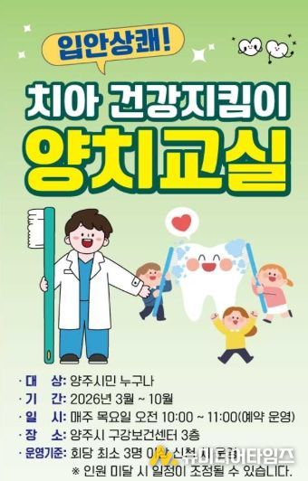 양주시보건소가 시민들의 올바른 양치습관 형성과 구강건강 증진을 위해 2026년 3월부터 10월까지 ‘입안 상쾌! 치아 건강지킴이 양치교실’을 운영한다.