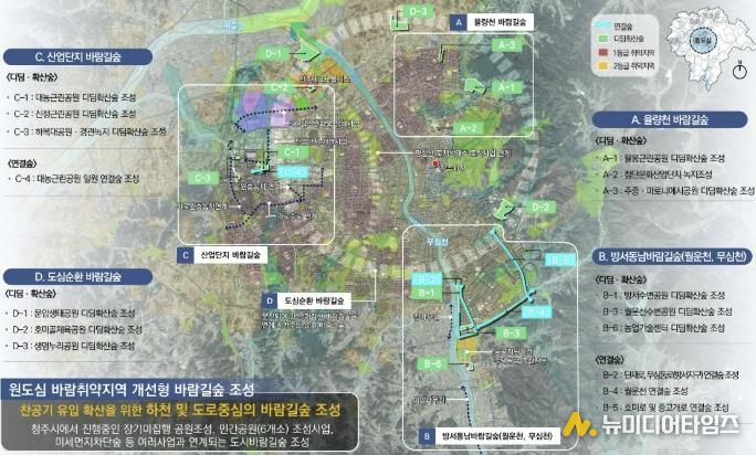 청주시는 신선한 공기를 도심으로 유입하는 ‘도시바람길숲 조성사업’ 2차년도 사업을 본격 추진한다고 23일 밝혔다.