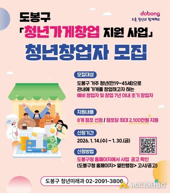 신청은 1월 30일까지 신청서 등 구비서류를 갖춰 담당자 전자우편으로 제출하면 된다. 총 8개 점포를 접수한다. 자세한 사항은 도봉구 누리집(알림마당-고시/공고)에서 확인할 수 있다.