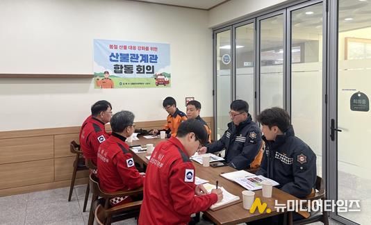 김해시는 23일 오전 김해시공원녹지사업소에서 김해동부소방서, 김해서부소방서와 함께 산불재난 대응체계를 재점검하며 협력체계를 다졌다.