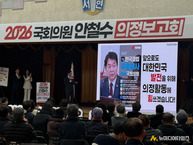 안철수 국민의힘 국회의원(성남 분당갑)이 25일 오후 의정보고회를 열고 지난 1년 7개월간의 의정활동 성과를 상세히 보고했다. 추운 날씨와 일요일 오후 시간임에도 불구하고 많은 주민들이 좌석이 부족해 서서 참석할 정도로 높은 관심을 보였다.