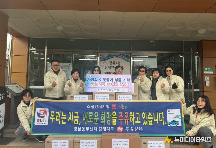 김해시 장유1동은 지난 23일 EBTS협동조합 김해지국(지국장 홍두연)에서 장유1동 주민을 위해 써달라며 390만원 상당의 칫솔과 치약을 기탁했다고 밝혔다.