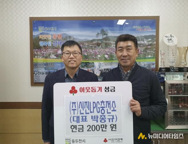 동두천시 상패동 행정복지센터는 지난 23일 관내 소재한 (주)신진LPG충전소로부터 저소득 취약계층을 위한 이웃돕기 성금 200만 원을 기탁받았다고 밝혔다.