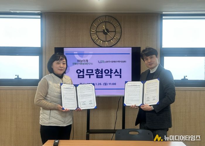 남양주시는 26일 남양주시장애인가족지원센터가 하늘아래장애인사회문화연구소와 장애인가족의 복지 증진을 위한 업무협약(MOU)을 체결했다고 밝혔다.