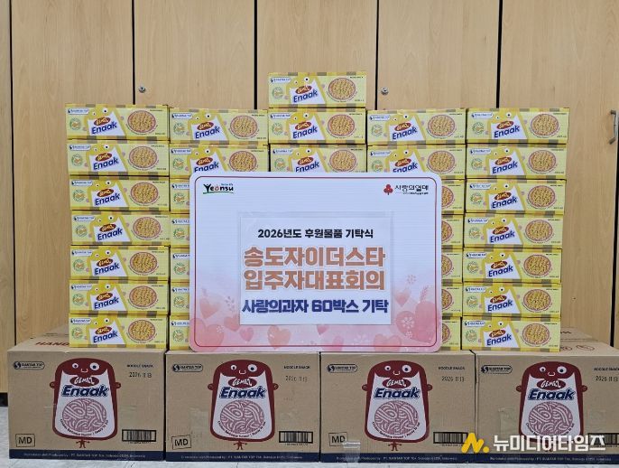 연수구는 지난 26일 송도자이 더 스타 입주자대표회의(회장 김소희)로부터 지역 내 취약계층 아동을 위한 과자 60상자를 전달받았다.