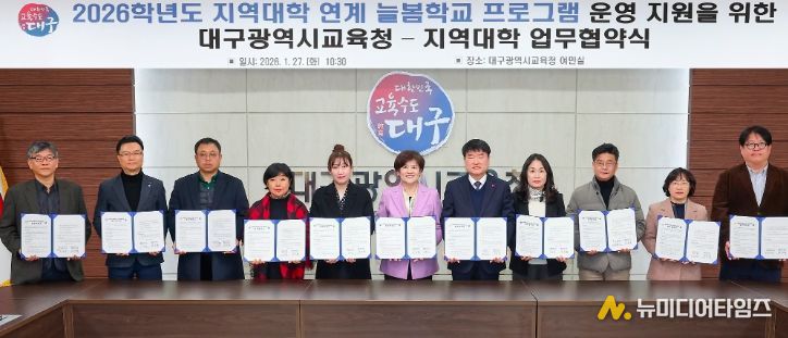 대구시교육청은 1월 27일 시교육청 여민실에서 지역대학 10곳과‘2026학년도 늘봄학교 프로그램 운영’을 위한 업무협약을 체결한다고 밝혔다.