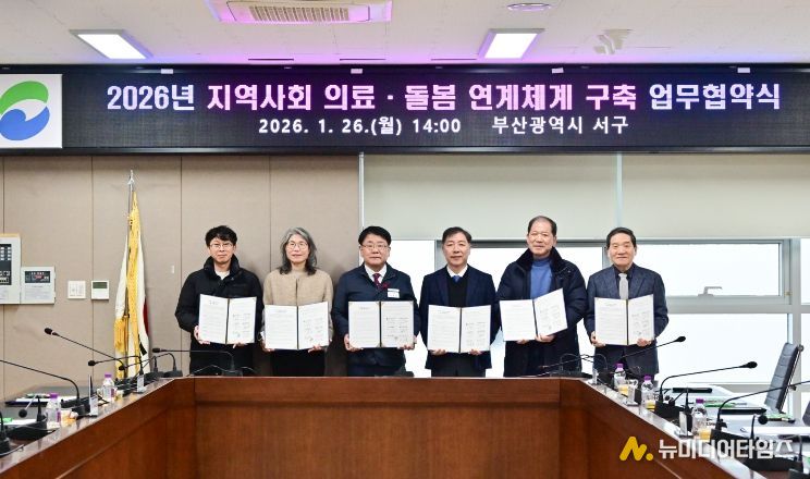 부산 서구는 지난 26일 ‘돌봄통합지원법’ 시행에 맞춰, 의료·요양·돌봄 통합지원기반을 조성하고자 ∆동아대학교대신병원(병원장 김기림), ∆바른병원(병원장 강정한), ∆선하요양병원(이사장 허방), ∆송도요양병원(이사장 정하용), ∆이의용밝은길요양병원(병원장 이의용)과 업무협약(MOU)을 체결했다.