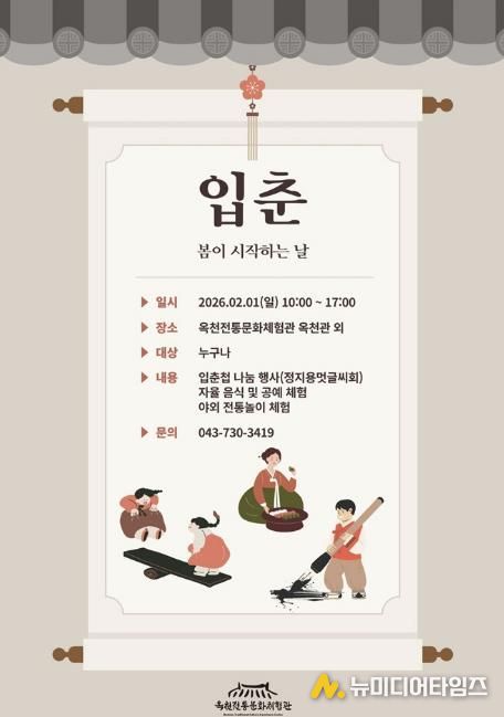 군 관계자는 “입춘을 맞아 군민과 관광객들이 전통 세시풍속을 직접 체험하며 새봄의 의미를 느끼는 시간이 되길 바란다”며 “이번 행사가 한 해의 복과 평안을 기원하고 전통문화의 가치를 되새기는 뜻깊은 자리가 되길 기대한다”고 말했다.