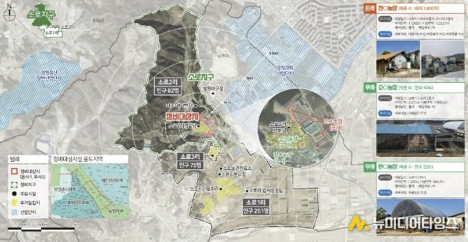 시는 2024년 농림부 공모사업에 선정됨에 따라 총사업비 100억원(국비 50억, 도비 15억, 시비 35억)을 확보하고 2028년까지 5년간 사업을 추진할 계획이다. 돈사와 우사 1만6,994㎡를 철거하고, 마을회관 등 생활SOC 시설, 경관농지 등 주민 편의시설을 조성하는 것이 목표다.
