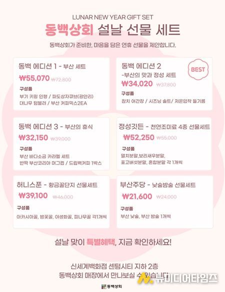 부산시와 부산경제진흥원은 부산 우수 제품 쇼핑 숍 '동백상회'에서 설 명절을 앞두고 지역기업 제품으로 구성된 '선물 세트'를 출시하고, 동백상회 제품 구매 고객 대상 사은품 증정 행사를 진행한다고 밝혔다.