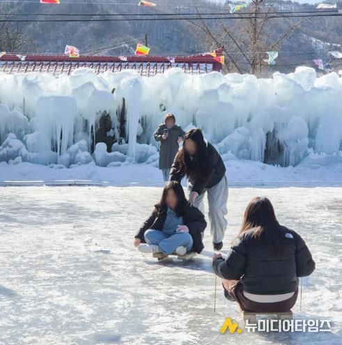 소랭이 농촌체험휴양마을은 축제 기간 얼음공원 외에도 자연 얼음 썰매장과 아동용 에어바운스를 무료로 이용할 수 있도록 운영한다.