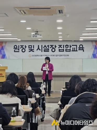 대구 중구보건소는 지난 22일 중구 어린이·사회복지 급식관리지원센터 주관으로 어린이집·유치원 등 어린이 급식시설과 노인·장애인시설 등 사회복지 급식시설 시설장을 대상으로 집합교육을 실시했다.
