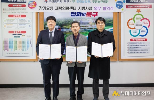 부산 북구는 29일 지역 내 의료·돌봄 연계를 강화하기 위해 장기요양 재택의료센터 빛하늘의원(금곡동), 푸른솔한의원(덕천동)과 업무협약을 체결했다고 밝혔다.