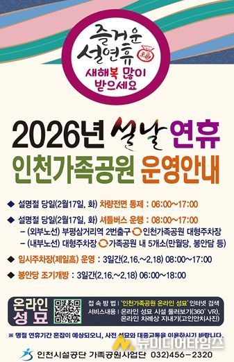 인천시설공단 인천가족공원은 2026년 설 명절 기간 중 성묘객의 안전하고 원활한 시설 이용을 위한 온·오프라인 서비스, 전 직원 특별 근무반 운영 및 市·경찰·소방 등의 협업 내용을 담은 '2026년 설 명절 성묘 종합대책'을 추진한다.