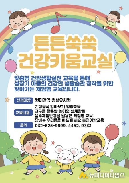 부천시는 2월부터 4월까지 원미권역 병설유치원에서 미취학 아동의 건강한 생활습관 형성과 비만 예방을 위한 체험형 교육 프로그램 ‘튼튼쑥쑥 건강키움교실 1기’를 운영한다.