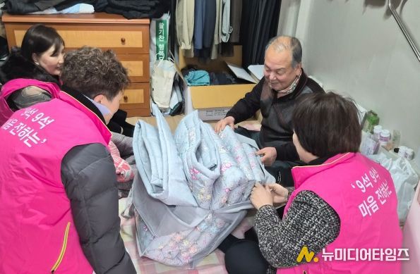 지난 28일 연일 이어지는 한파 속에서 대구 남구 대명9동 이승사자단(지역사회보장협의체)은 쪽방에 거주하는 취약계층을 방문해 겨울 이불 20세트를 전달하고 건강과 안부를 살폈다.