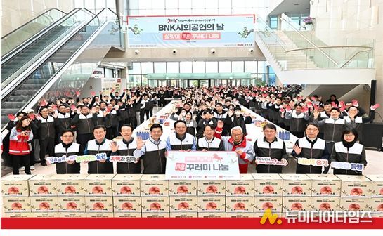 비엔케이(BNK) 금융그룹(회장 빈대인)은 국수, 라면, 커피, 참기름 등 각종 식료품을 담은 생필품 꾸러미(19종) 총 4억 5천만 원 상당의 성품을 임직원들이 자원봉사로 직접 포장해 저소득·취약계층 9천 세대에 지원했다.