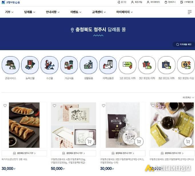 시 관계자는 “청주시에 마음을 보내주신 기부자들의 취향을 반영한 다양한 답례품을 선보일 계획”이라며 “만족도 조사와 업체 점검을 통해 품질 좋은 답례품 제공이 이뤄지도록 지속적으로 노력하겠다”고 말했다.