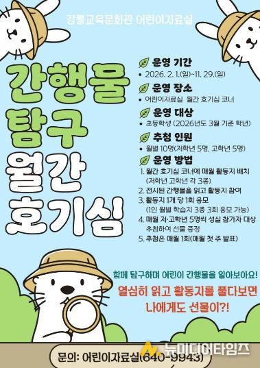 강릉교육문화관(관장 박기현)은 2026년 2월부터 11월까지 초등학생을 대상으로 간행물 탐구 ‘월간 호기심’을 운영한다.