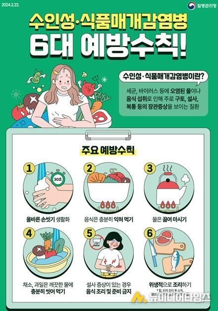 수인성·식품매개 감염병이란 세균이나 바이러스 등에 오염된 물 또는 음식을 섭취함으로써 발생하는 감염병으로, 주요 증상으로는 구토, 설사, 복통 등의 증상이 나타난다.