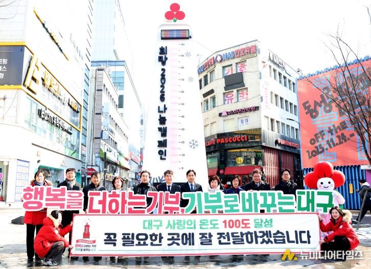 대구시는 시민과 기업이 함께 만들어낸 온정의 힘으로 지난 1월 26일 사랑의 온도 100도를 조기 달성한 데 이어, 31일 최종 온도 104.6도를 기록하며 ‘희망2026 나눔캠페인’을 성공적으로 마무리했다.