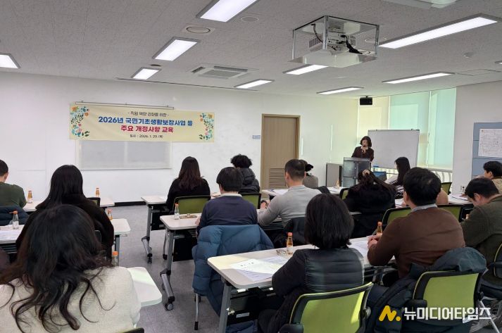 이번 교육은 2026년 기준중위소득 인상에 따른 복지급여별 선정 기준과 주요 지침 개정 사항 및 사례 중심의 실무 대응 방안을 중심으로 진행됐으며, 직원들의 이해도를 높이고 전반적인 복지 분야의 통합적 접근을 통한 업무 효율성 도모에 중점을 두었다.