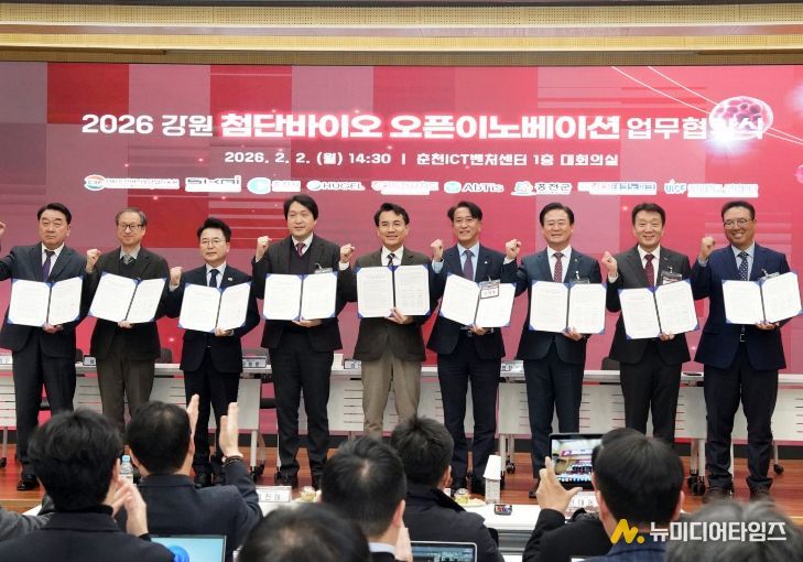 홍천군은 2월 2일, 강원특별자치도, 춘천시와 함께 춘천 ICT벤처 센터에서 「강원 첨단 바이오 오픈 이노베이션 프로그램」 업무협약식과 사업설명회를 개최하고, 올해부터 사업을 본격 확대 추진한다고 밝혔다.