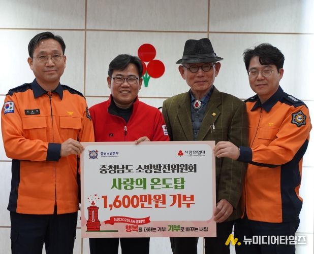 충청남도 소방발전위원회(소방정책 자문·협의기구)는 지난 30일 연말연시 이웃돕기 성금 모금인 ‘사랑의 온도탑’에 성금 1600만 원을 기탁했다고 1일 밝혔다.