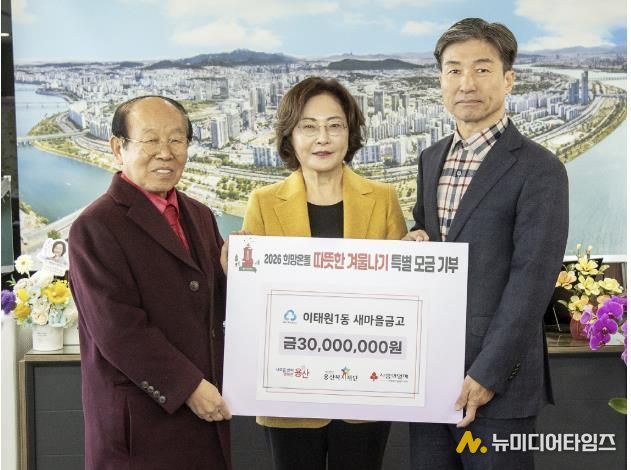 서울 용산구는 2일 구청장실에서 이태원1동 새마을금고로부터 ‘2026 희망온돌 따뜻한 겨울나기’ 성금 3000만원을 기탁받았다고 밝혔다. 기탁된 성금은 지역 내 저소득 가구와 취약계층을 위한 긴급 생계·의료 지원 등에 사용될 예정이다.