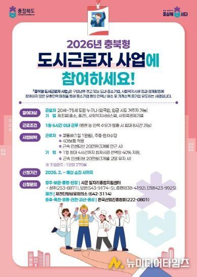 충북도가 도내 기업과 소상공인의 구인난 해소와 유휴 인력의 경제활동 참여를 위한 ‘2026년 충북형 도시근로자 지원사업’을 2월부터 본격 시행한다.